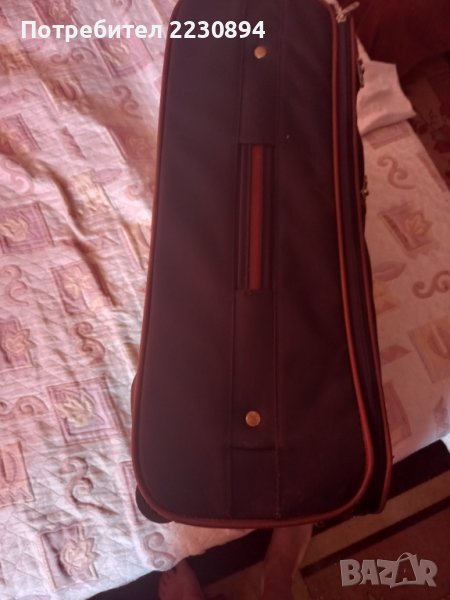 Мек куфар,,Samsonite".Цвят:Черно-Кафяв.Дължина: 55см.Ширина: 35см.,Дълбочина:20см на куфара.Две колела.Вътрешен джоб с цип.Два външни джоба с цип.Дръжка отгоре за теглене и носене и дръжка за носене отстрани.Нормални следи от ползване.