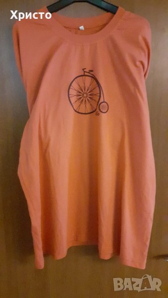 Продавам тениска авторска " Ретро велосипед" уникат, лимитиран тираж, ушита по поръчка от качествен плат 100% памук, авторска рисунка. Останаха само размери XL и XХL по 1-2 бройки и няма да се прави нов тираж. Размер XХL е 62 см разстояние под мишниците и 70 см от рамото до долния ръб. Цвят кафеникав.