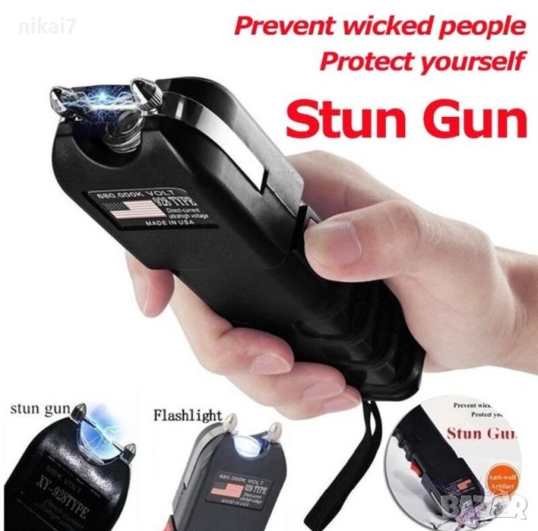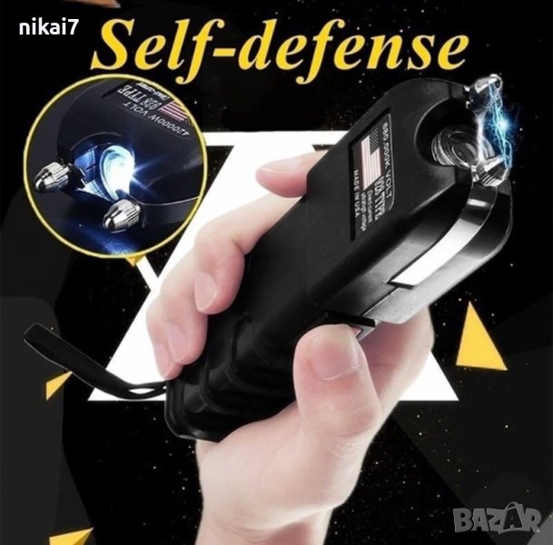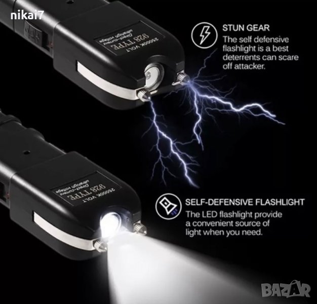 мощен електрошок за самозащита+силен акумулаторен лед фенер кучегон