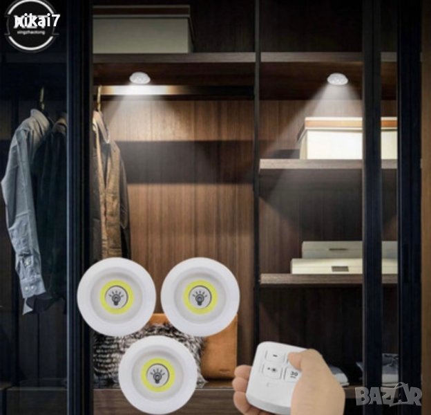 3 броя LED лампи с дистанционно. Лесни за инсталиране,чрез самозалепващи се лепенки.