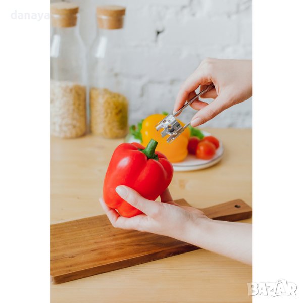 Прибор за почистване на чушки пипер от семките и дръжките на зеленчука. Здрава и стабилна дръжка, удобна за работа. Приборът е незаменим помощник при пиготвянето на домашни туршии, лютеници и всякакви вкусни зимнини, в които добавянето на огромните червени чушки, пипер, капии, камби е задължително.