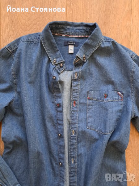 риза Okaidi дънкова обличана веднъж без никакви следи от носене