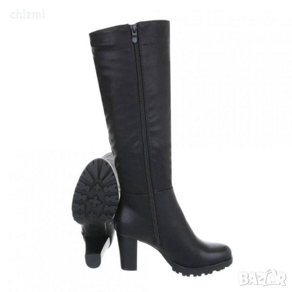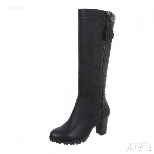 Модерни ботуши под коляното, изработени от здрава имитация на кожа. Ботушите убеждават с високо качество на изработка. Отвътре меката подплатена подложка за крака осигурява оптимален комфорт. Тези страхотни ботуши могат да се комбинират по много начини.