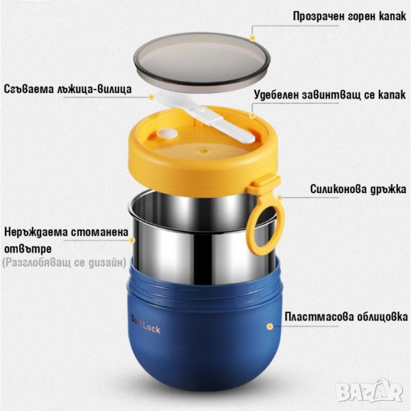 Термос купата е двуслойна, така тя е предназначена за пренасяне на топла или студена храна. Тя ще запази температурата на любимата ви храната за няколко часа (или около от 1 до 2 часа).