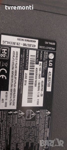 борда е гарантирано работещ Демонтиран от телевизор LG модел 42LB5700 със счупен дисплей HC420DUN-VAHS2-51XX тесвана от нашия техник