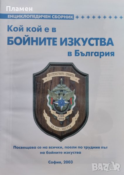 Кой кой е в бойните изкуства в България. Енциклопедичен сборник -издание 2003г. с твърди корици в 233 страници (наранена корица отдолу, вътре отлична) -36 евро.