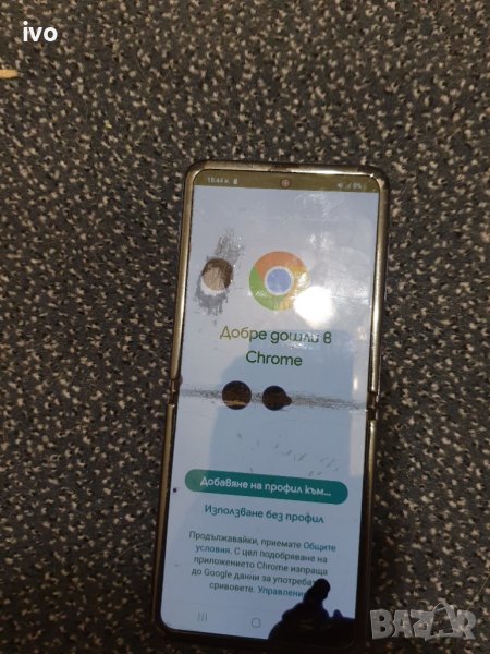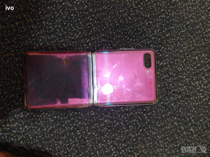 Оригинален samsung z flip телефона работи но дисплея е за смяна,платка и батерия перфектни,няма акаунт.