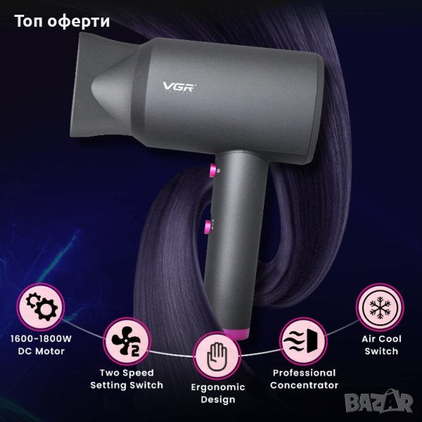 ПРОМОЦИЯ! Професионален сешоар VGR V-400