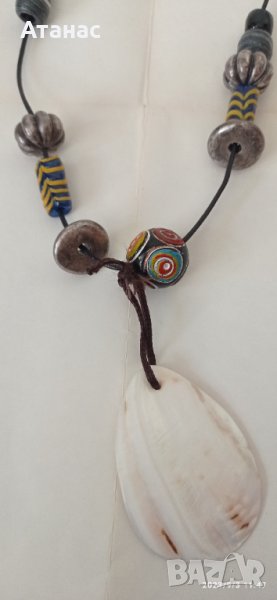 Дамско украшение гердан съставен от различни елементи.Най долу има седефена плочка.