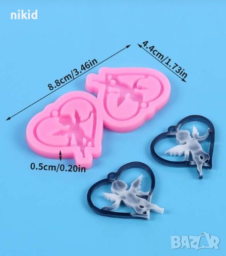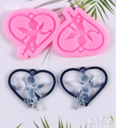 Ангел ангели в сърце висулки силиконов молд форма за обеци колие бижу декор фондан смола висулка → Обява 42069523