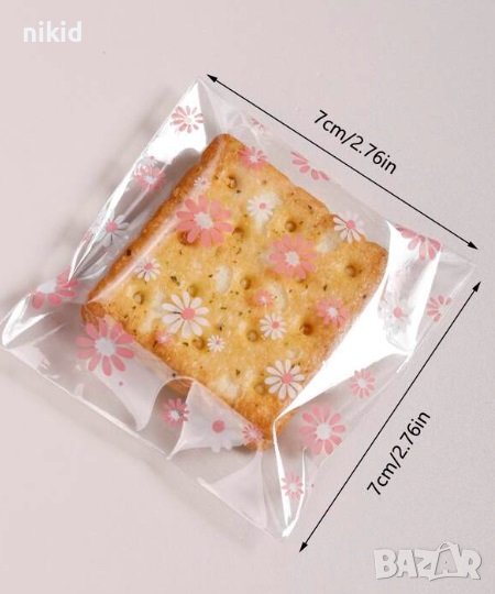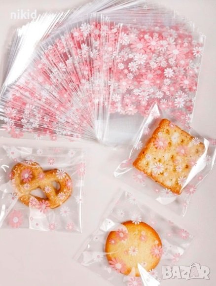 50 бр Прозрачни розово бели маргаритки цветя опаковъчни пликчета торбички за дребни сладки подаръци → Обява 42069539