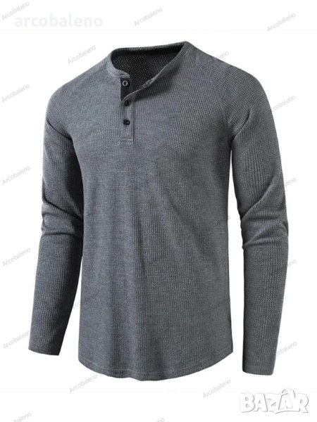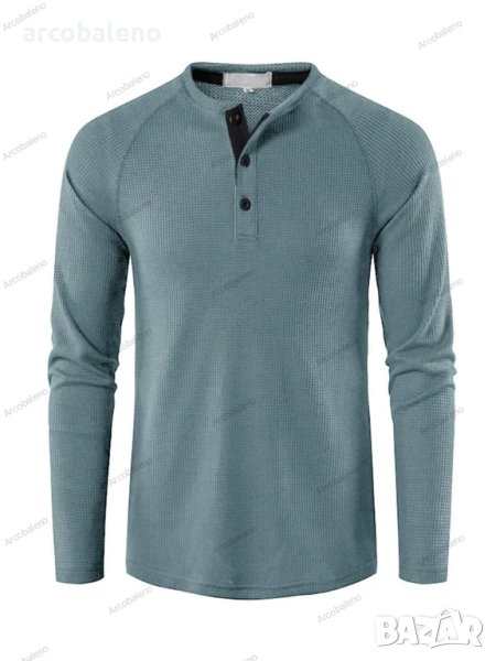 Мъжка едноцветна тениска с дълъг ръкав и копчета, 8цвята