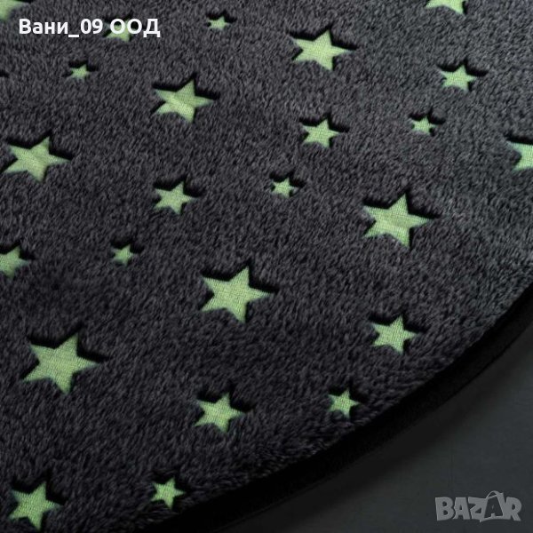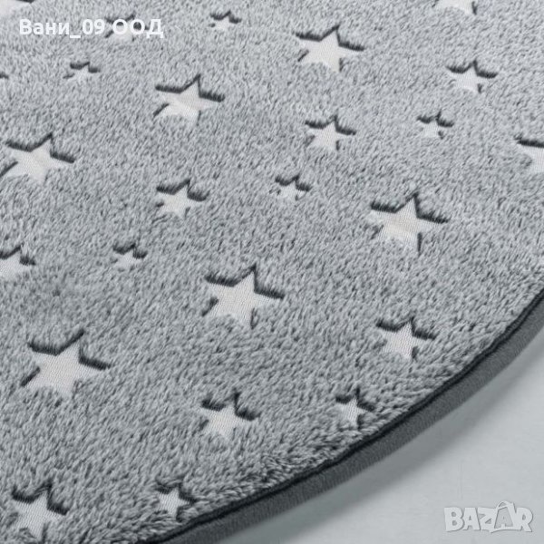 Кръгъл сив килим с бели звезди, светещи в тъмното, Ф90 см