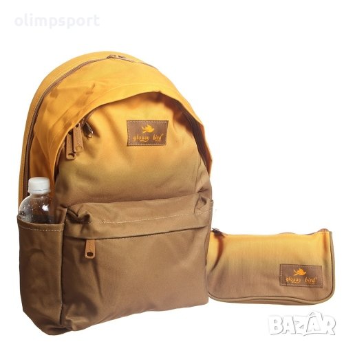 Раница ученическа Glossy Bird с размери 44х29х16 см. Ергономичен подплатен гръб с канали за вентилация. Широки подплатени и дишащи презрамки със светлоотразителни ленти. Раницата е с 2 различни по обем основни отделения с двупосочни ципове, 1 преден джоб с цип, и 2 странични джоба. По-голямото основно отделение има преграда с ластик, с която се обособява пространство за малък лаптоп или таблет. Раницата е в комплект с несесер 22х11х7 см за ученически пособия в същия десен. Размери раница - ширина 29 см, височина 44 см, дълбочина 16 см. Размери несесер - 22х11х7 см. Тегло за комплект – 0.700 кг. Материал - полиестер.