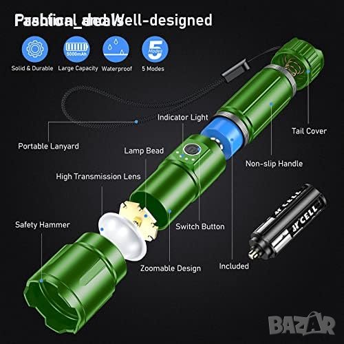 Ново мощно LED фенерче USB акумулаторно 5 режима за къмпинг туризъм