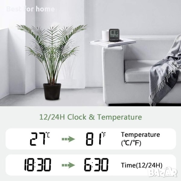 [Измерване на температурата и прост дизайн]: Можете да проверите температурата навсякъде и по всяко време. Температурните промени са важни за управлението на здравето, а простият дизайн на мини будилника LIORQUE спестява място