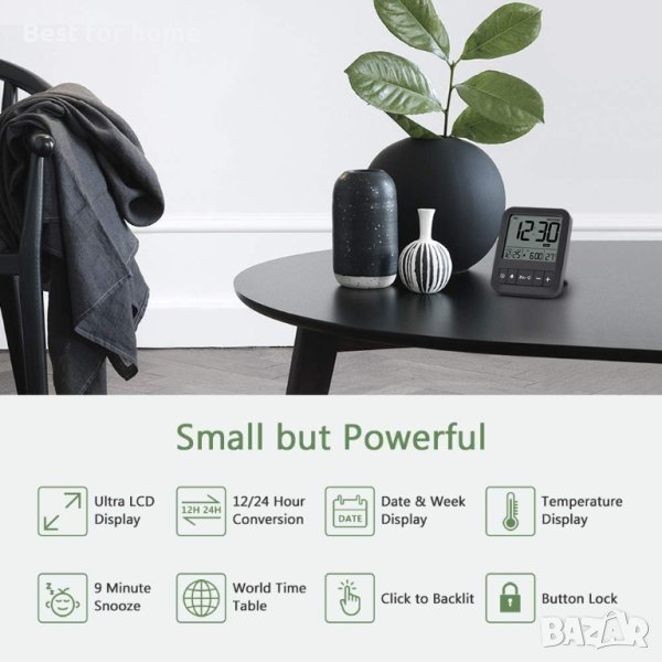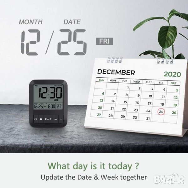 [Функция Snooze" и "Weekend"]: Когато алармата изгасне, натиснете бутона "Snooze" и алармата ще се рестартира след 9 минути. Можете да превключите на режим "Weekend" и будилникът няма да се задейства през уикендите и празниците и не е нужно да настройвате часа на часовника всеки ден. Тези функции са идеални за хора с навици да дремят