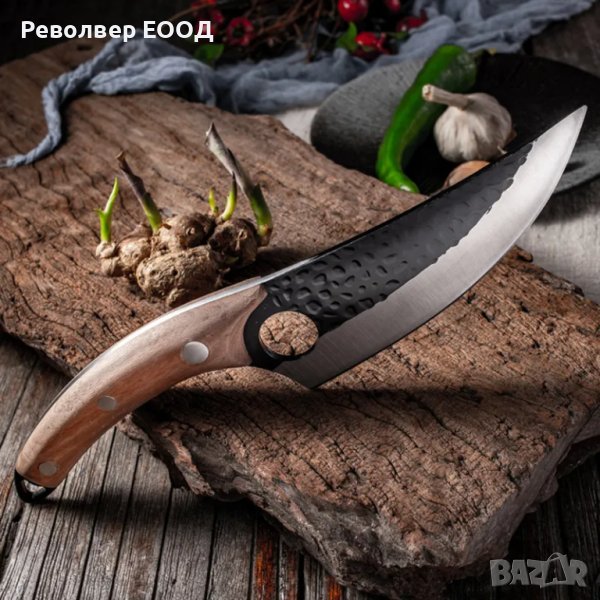 Изработен от високо въглеродна стомана с високо съдържание на манган, този нож осигурява изключителна здравина и острота на острието.
