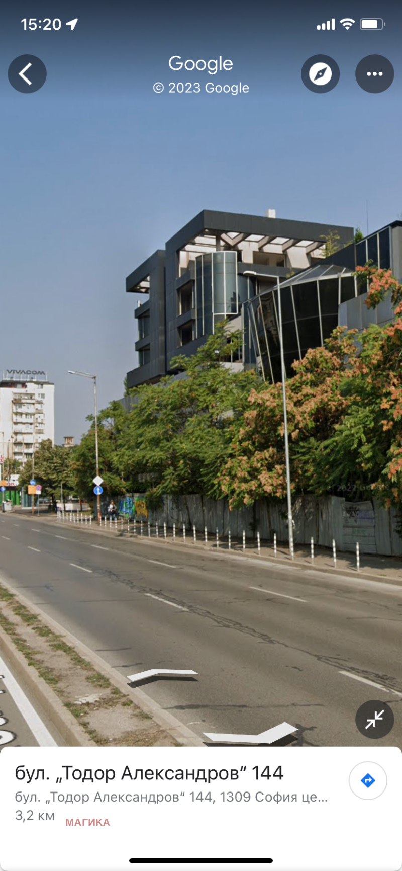 Сградата е построена в имот с идентификатор 68134.303.171 /шестдесет и осем хиляди сто тридесет и четири точка триста и три точка сто седемдесет и едно/ съгласно кадастралната карта и кадастралните регистри на гр. София, одобрени със Заповед РД-18-32/01.04.2016г. на Изпълнителния директор на АГКК,построени в недвижим имот, представляващ УПИ ХIII-30, от кв. 170 по регулационния план на гр. София, местност Запад направление , одобрен със Заповед РД-09-50-05/08.01.1998 г. и със Заповед РД-09-170/31.08.2005 г., с площ от 1 040 кв. м., при граници: ул. Зайчар , УПИ XIV-19, УПИ X I-14, ул. Царибродска , бул. Тодор Александров , находящ се в гр. София, бул. Тодор Александров 144. Сграда със смесено предназначение, с подземни гаражи, изградена в степен на завършеност груб строеж , разделена на три функционални зони - търговски център със самостоятелен вход, административна част със самостоятелен вход и жилищна част със самостоятелен вход, със застроена площ от 927 кв. м. и РЗП от 5 647 кв. м., съгласно разрешение за строеж 794/18.10.2005 г., изменено със заповед РД-09-50- 1235/19.09.2008 г. и одобрен инвестиционен проект от 29.08.2005 г., така както същият е изменен към 27.07.2007 г.