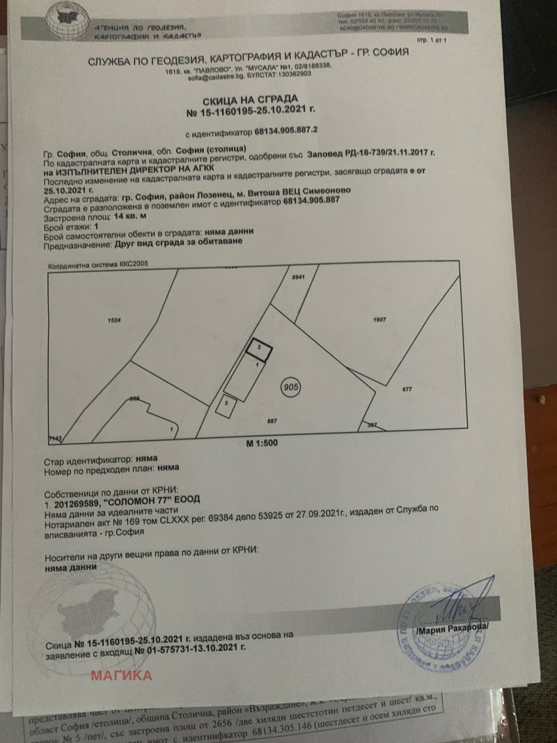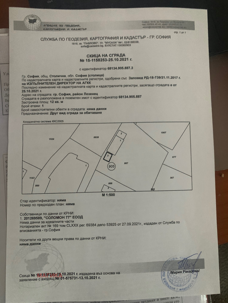 Забележка: на 22.08.2024год. е входирано в НАГ мотивирано предложение за план за регулация и план за застрояване на имота.