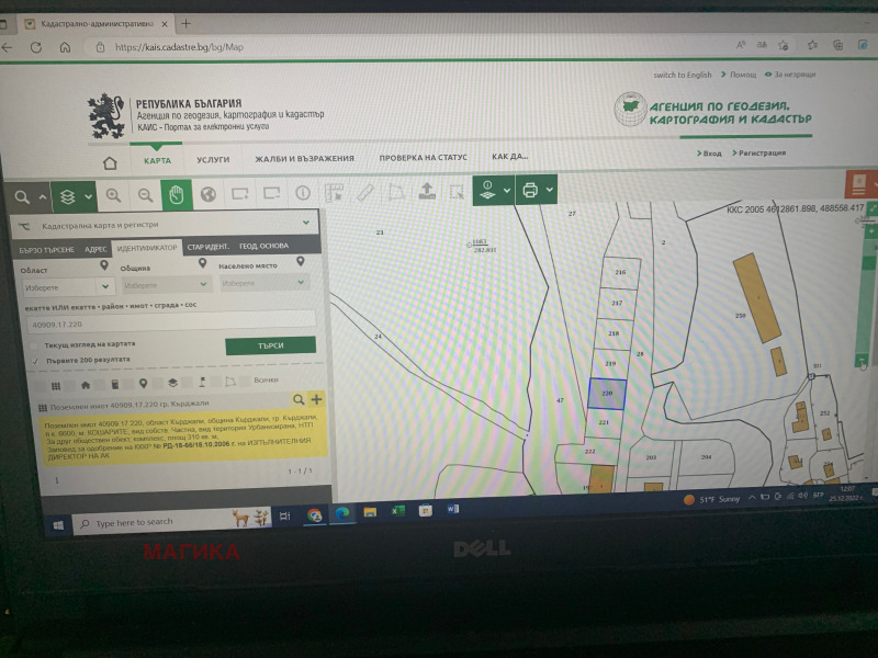 Поземлен имот 40909.17.220, област Кърджали, община Кърджали, гр. Кърджали, п.к. 6600, м. КОШАРИТЕ, вид собств. Частна, вид територия Урбанизирана, НТП За друг обществен обект, комплекс, площ 310 кв. м,;Намира се на територията на бившето поделение на Строителни войски;