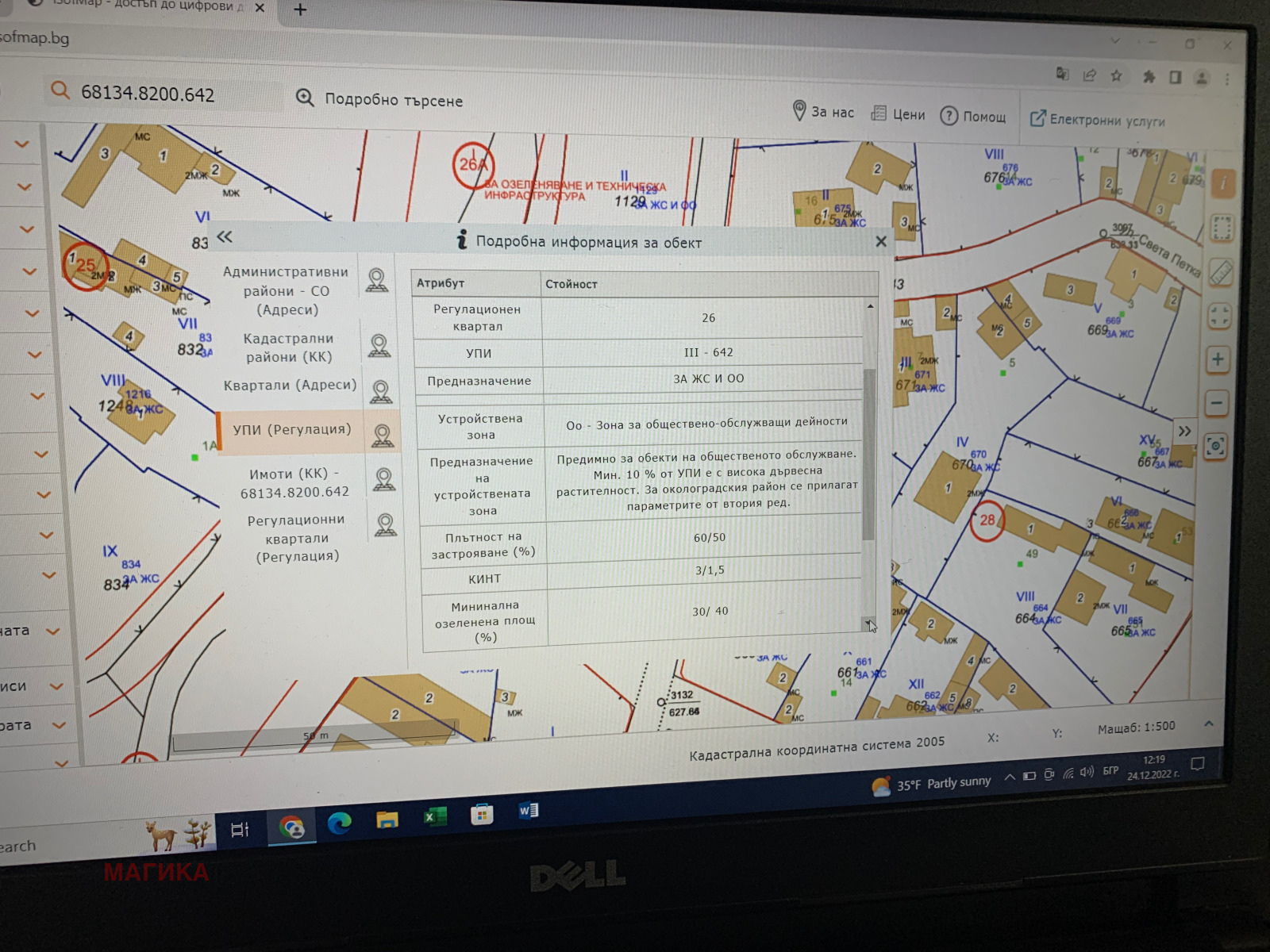 Устройствена зона - 'Оо' -зана за обществено обслужващи дейност, с допустимо РЗ за жилищни нужди до 60%; плътност на застрояване 60%; кинт 3; мин.озел. площ -30%;заедно с находящите се в него сграда Старо кметство със ЗП-150 кв.м.;