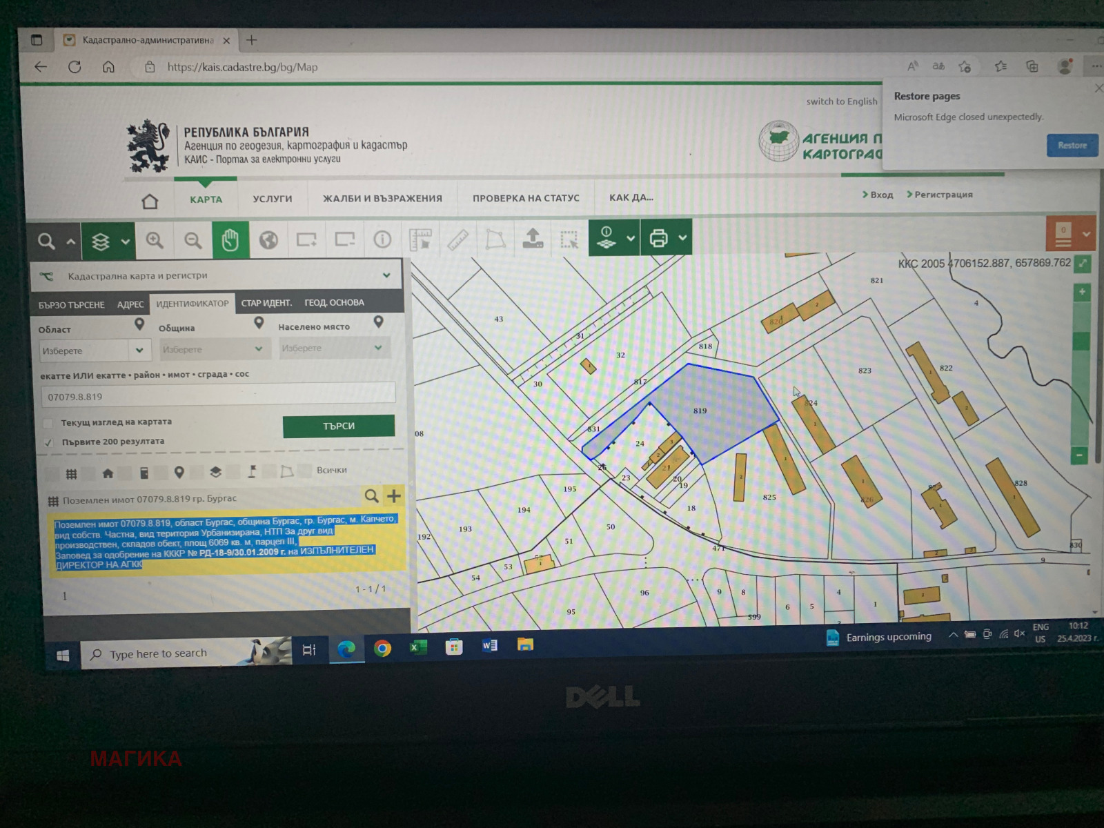1/2 иделна част от Поземлен имот 07079.8.819, област Бургас, община Бургас, гр. Бургас, м. Капчето, вид собств. Частна, вид територия Урбанизирана, НТП За друг вид производствен, складов обект, площ 6069 кв. м, парцел ,