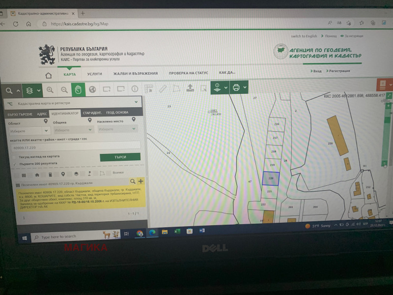 Поземлен имот 40909.17.220, област Кърджали, община Кърджали, гр. Кърджали, п.к. 6600, м. КОШАРИТЕ, вид собств. Частна, вид територия Урбанизирана, НТП За друг обществен обект, комплекс, площ 310 кв. м,;Намира се на територията на бившето поделение на Строителни войски.