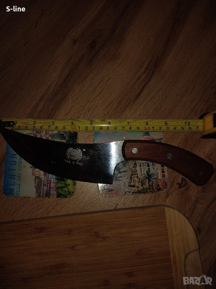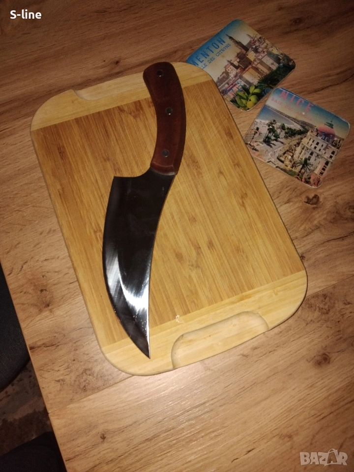 Ножа е нов, неизползван,много удобен за всякаква работа- колбаси, зеленчуци , меса и риба.Изкривената дръжка не позволява да се плъзга от ръката.Дръжката е от обработено дърво устойчиво на влага. Ножа е от неръждаема стомана и перфектно наточен. За Варна лично предаване .0899213355 пращам по Еконт преглед..