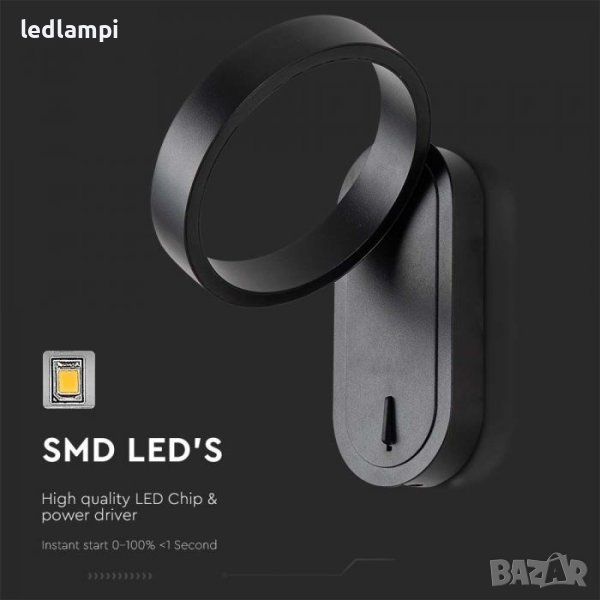 LED Аплик 5W Черен 2in1 Смяна на светлината