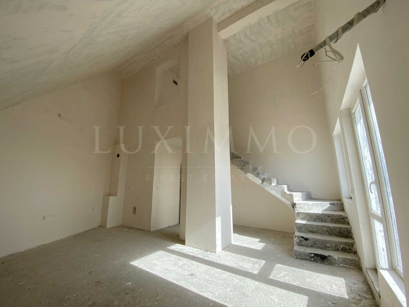 Представяме Ви чисто нов имот от тип мезонет на две нива, с високи, пет и половина метра тавани, големи и слънчеви тераси с прекрасни гледки към морето и града, разположен в нова сграда с Акт 16 в Поморие.