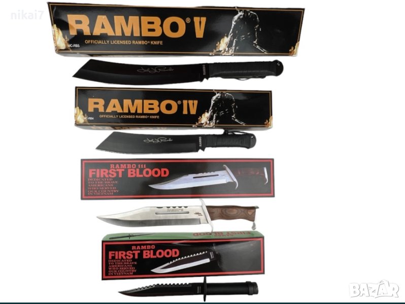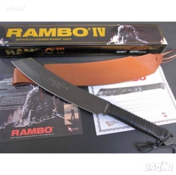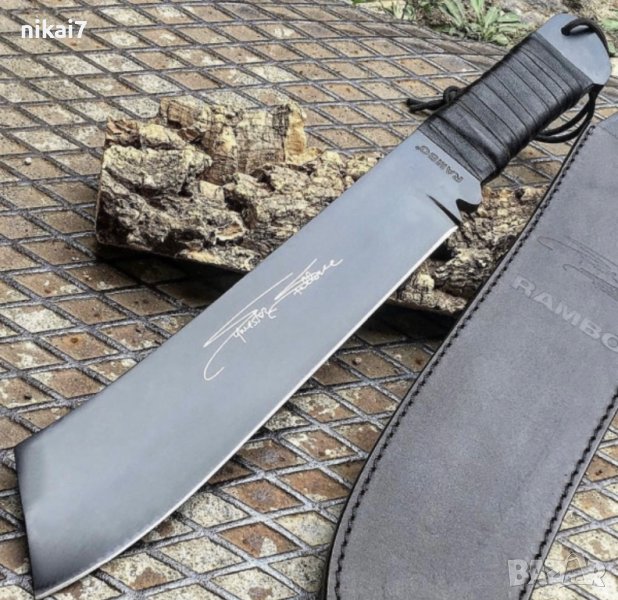 Автентична качествена имитация на всеизвестното мачете използванот от Силвестър Сталоун във филмите за Рамбо. Дизайнът на мачетето е наполовина измислен от легендарният актьор специално за поредицата. Изработено от специфична 1060 high carbon стомана, острието притежава неизменна здравина и красота. Подписът върху острието му придава още по-автентичен вид.