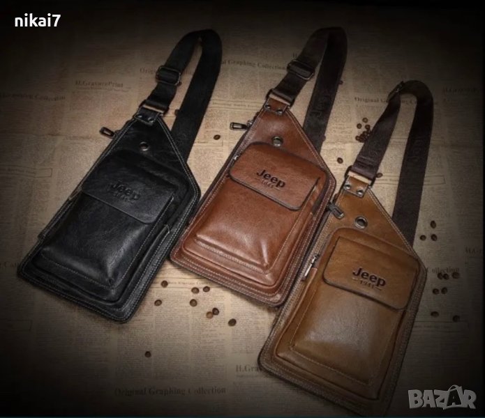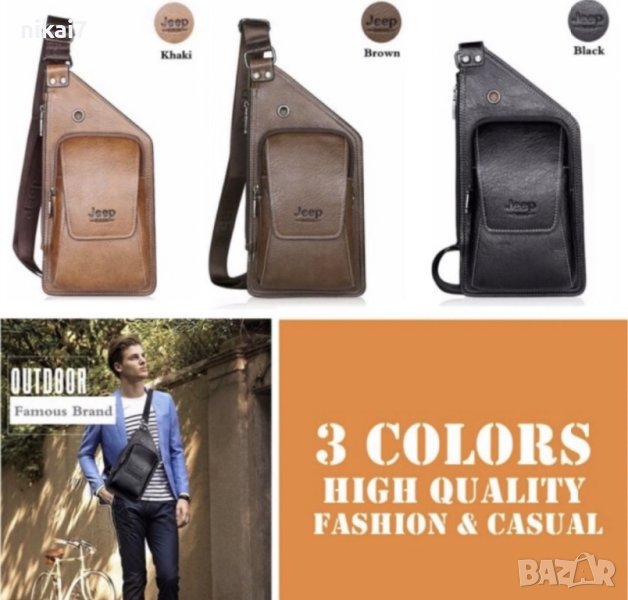 мъжка чанта кожена JEEP BULUO паласка за през годи с една презрамка
