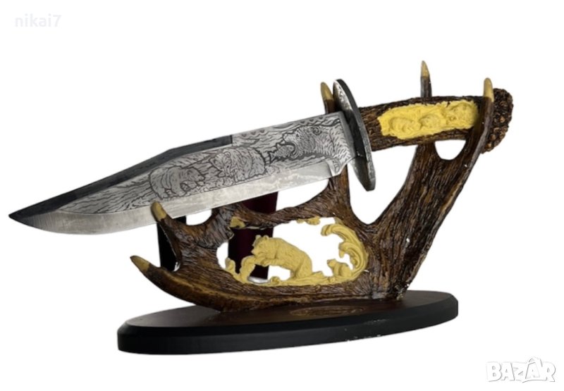 ловен нож колекционерски нож сувенир подарьк трофейна поставка 22cM