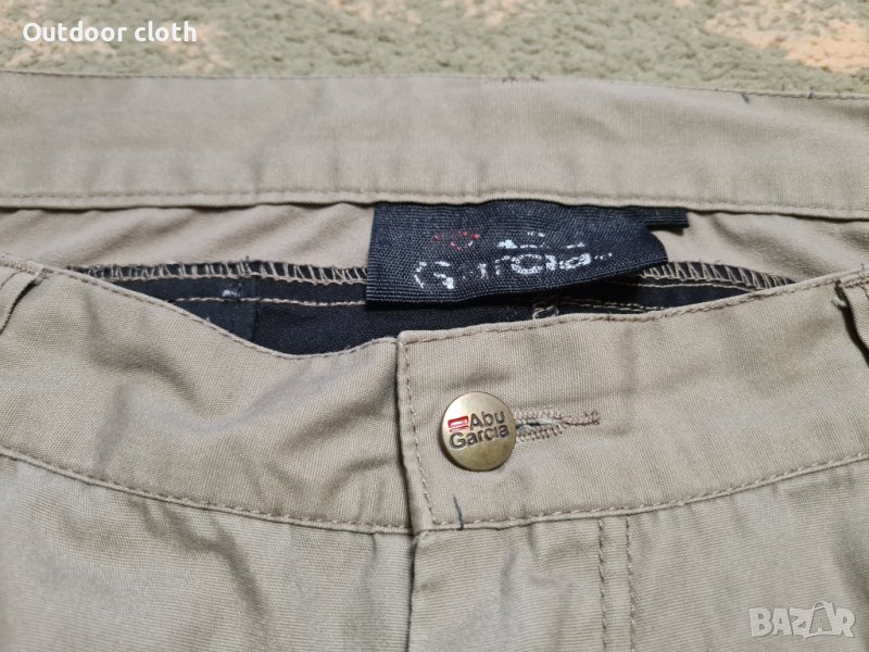 Хибриден панталон на Abu Garcia.Бежовата материя е здрава,а черната е еластична,което прави панталона супер удобен. Има два горни джоба, два на крачолите и един заден пристяга долу при подгъва.
