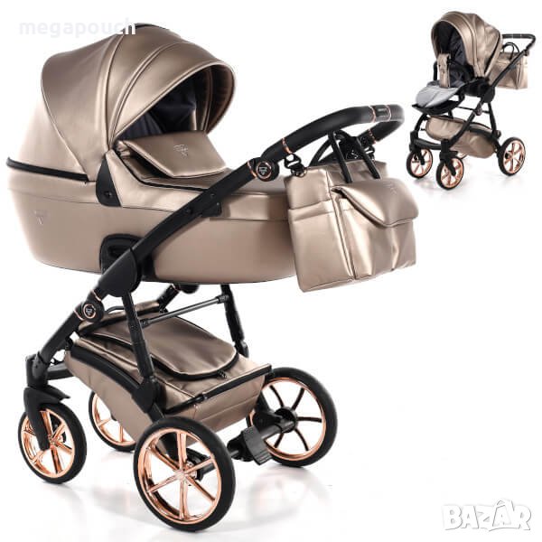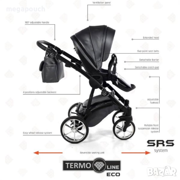Бебешка количка Termo Line Eko 2in1 Junama в 3 цвята - стилен модел от еко кожа, оборудван с кош за носене от лека пластмаса и функционална количка