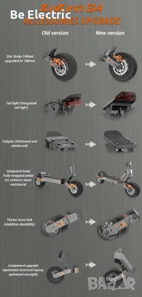 4. Подобрена водоустойчивост. Тротинетка ще има подобрена защита срещу намокряне. Целия дек ще бъде добре изолиран и укрепен.
