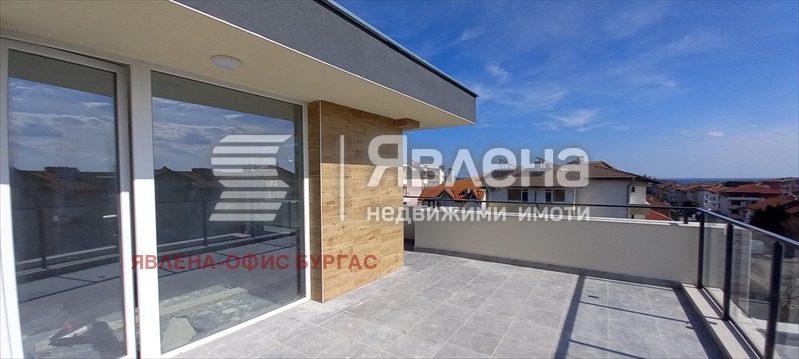 Явлена продава тристаен апартамент в нова жилищна сграда без такса поддръжка в Царево. Жилището е разположено на четвърти етаж. Застроената площ на апартамента е 199 кв.м, от които тераси 105 кв.м. Апартаментът се състои от антре, две спални, всяка със санитарен възeл и просторна южна дневна с трапезария. От всяко помещение се излиза на п-образна покривна тераса.