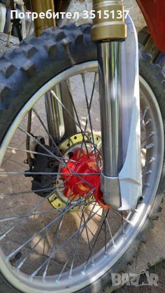 готов за каране , обслужен по всеки възможен начин , обърната предница и две дискови спирачки МОЖЕ И НА ЧАСТИ рамката без двигател 1400лв в състояние от снимките , двигател оборудван с всичко да работи 2200лв