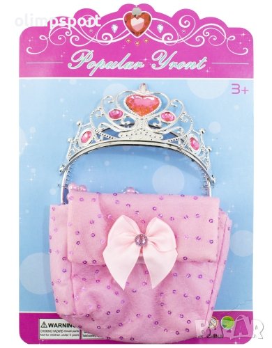 Ако Вашето момиченце иска да влезе в образа на любимата си принцеса, тази играчка е идеална за нея. Короната е украсена е с мъниста и малки цветчета. Тя добавя още блясък на красивите коси на принцесата. В комплекта има и малка кокетна чантичка с пайети и перлена дръжка. Представяйки се като принцеса, детето развива своето въображение. Играчката не е подходяща за деца под 3 години, съдържа дребни елементи!