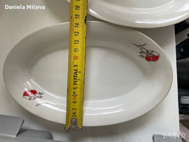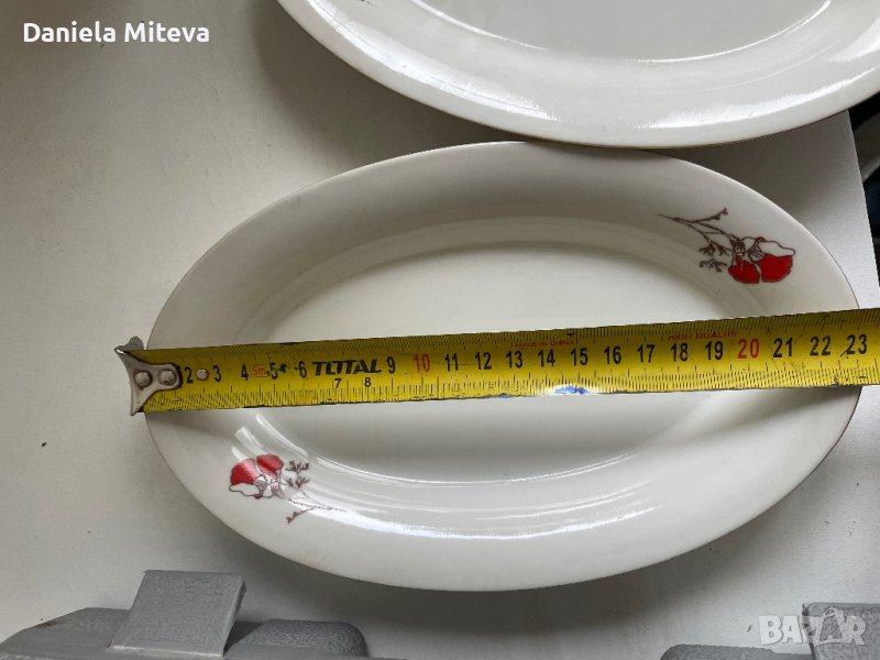 Две елипсовидни чиний българско производство цената е за брой Шест дълбоки без забележка и шест плитки за основно ,но на две от тях има забележки който съм снимала