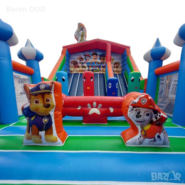 Детски надуваем батут за скачане "Пес Патрул" 2 с включена пързалка и вход с декорации с отбора на анимационното филмче.