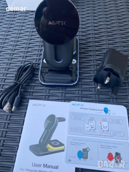 Пакетът включва 1 безжично зарядно устройство, 1 USB C кабел, 1 UK 18W адаптер и 1 ръководство.