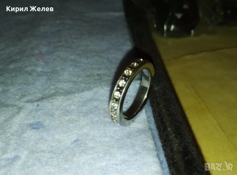 ФЕШЪН АРТ ПРЪСТЕН ХАЛКА БЛАГОРОДНА СТОМАНА с БЯЛА ПОЗЛАТА и ИСКРЯЩИ ФАСЕТИРАНИ ЦИРКОНИ 39257