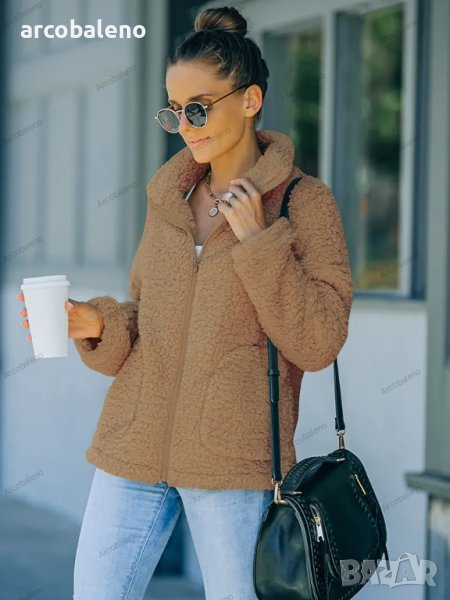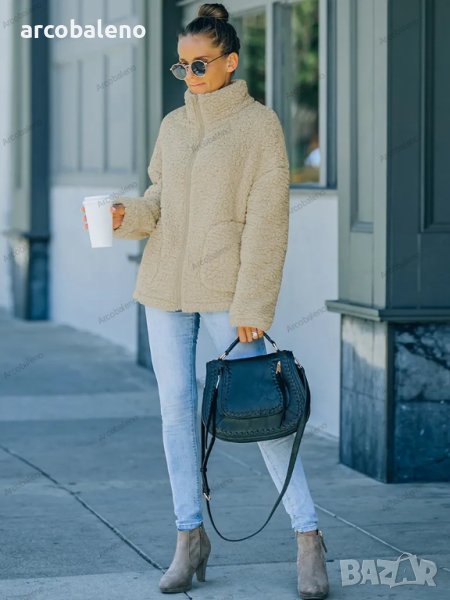 Дамско есенно-зимно топло яке с имитация на агнешки косъм, 6цвята