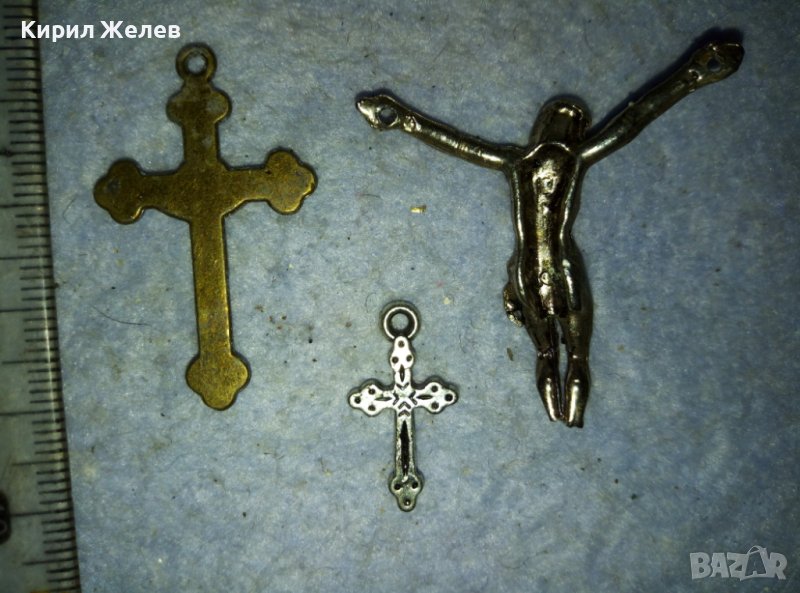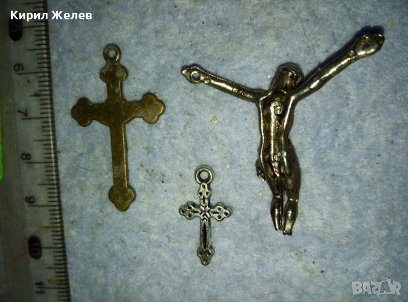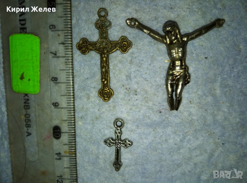 ЛОТ ТРИ СТАРИ МЕТАЛНИ КРЪСТЧЕТА РАЗПЯТИЕ 39223