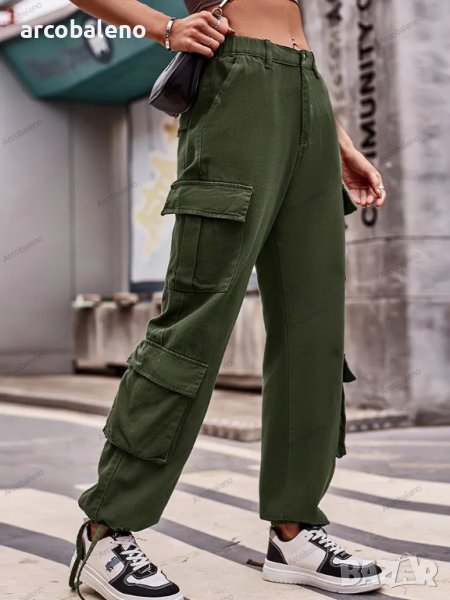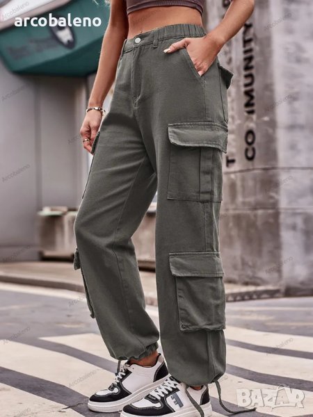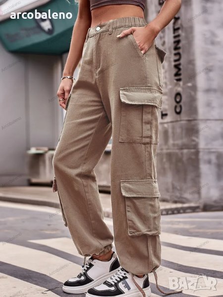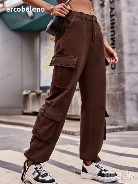 Дамски дънкови карго панталони с широки джобове и връзки, 5цвята