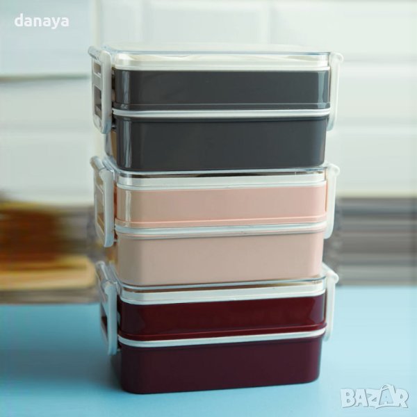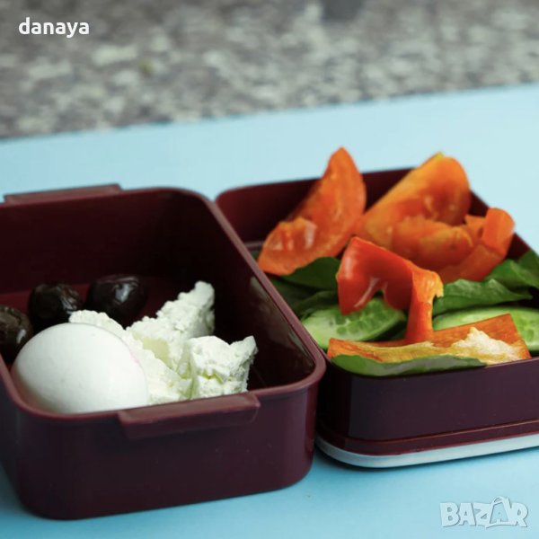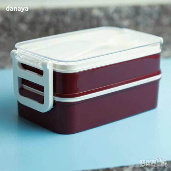 Малка кутия за обяд на две нива с прибори за хранене лъжичка и виличка. Кутията е с малък капацитет, подходяща за деца. Изработена от BPA FREE пластмаса. С тази кутия за обяд можете да носите своите здравословни закуски със себе си по всяко време и навсякъде!