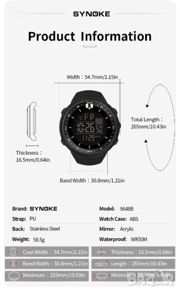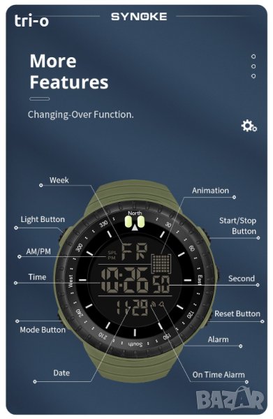 Часовник SYNOKE Спорт Мултифункционален Водоустойчив Удароустойчив Нов, фабрична опаковка!