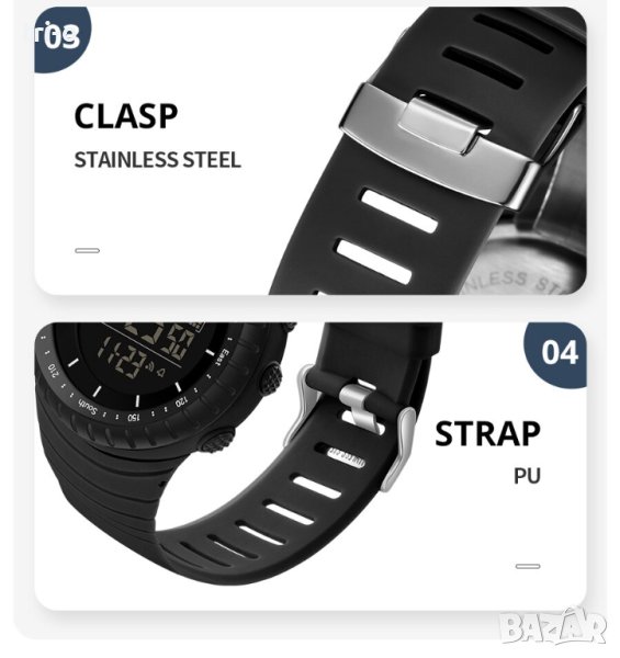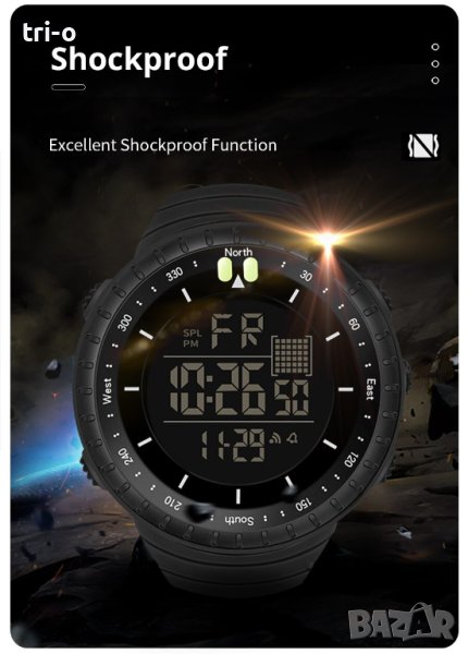 • Водоустойчив и удароустойчив: Този часовник е водоустойчив и удароустойчив, което го прави идеален за спорт и дейности на открито.